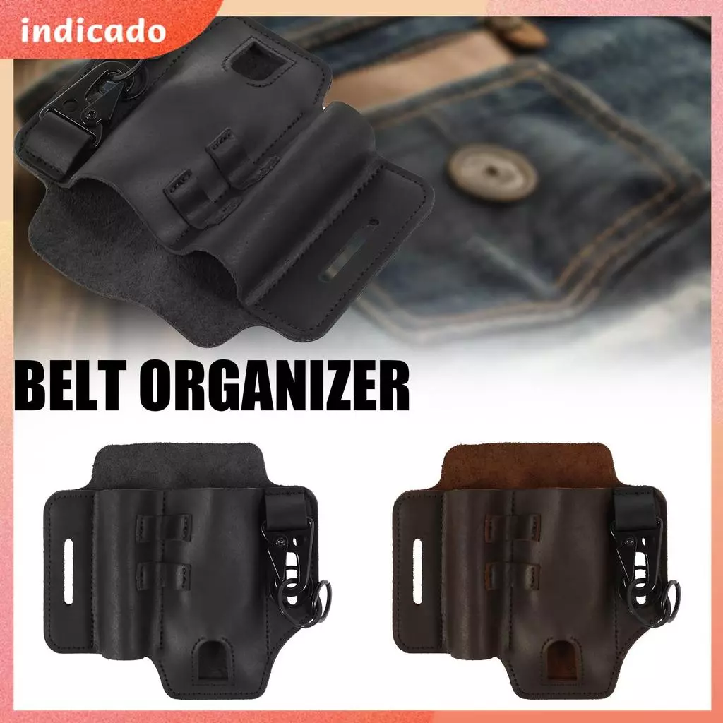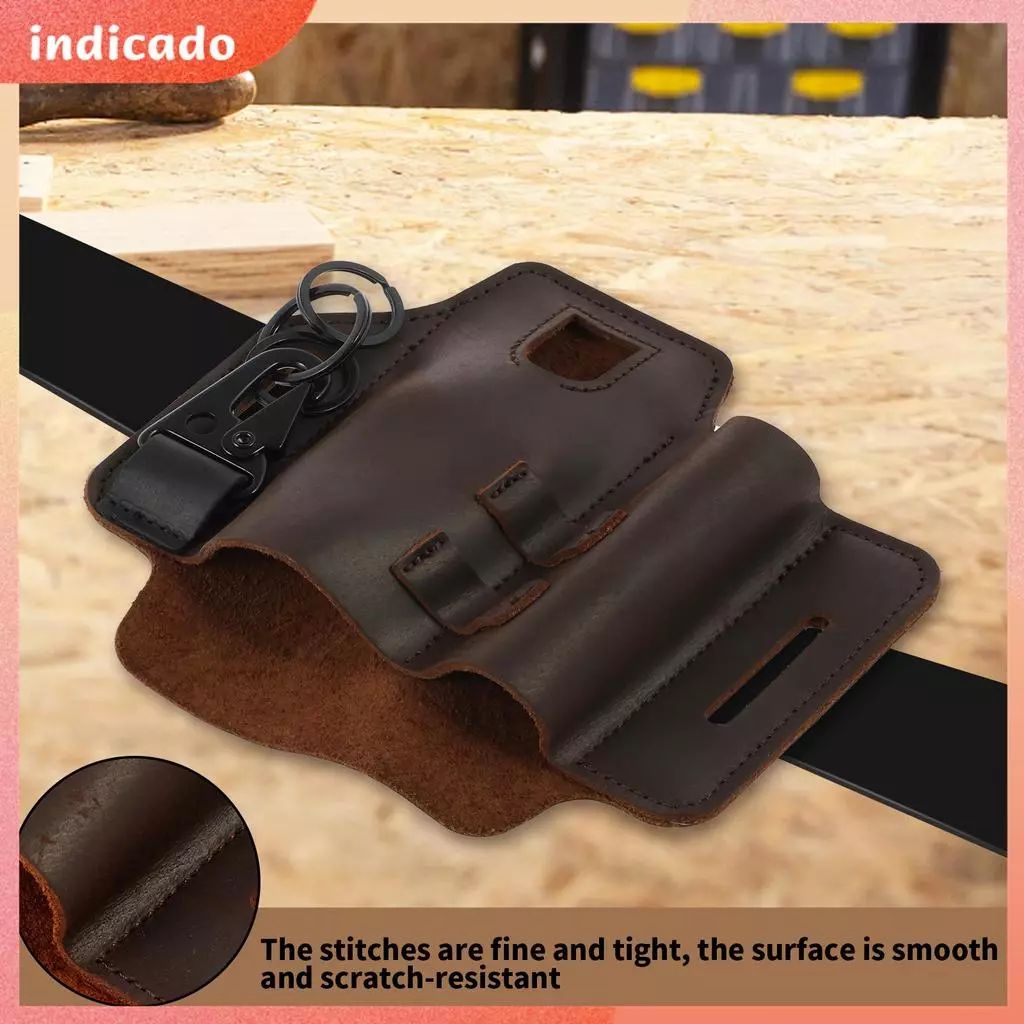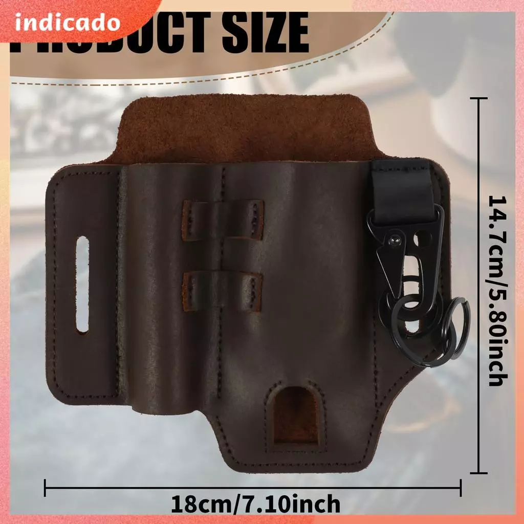 Bainha Multitool em Couro EDC – Organizador de Cinto 3 em 1 com Porta-Lanterna, Caneta e Chaveiro