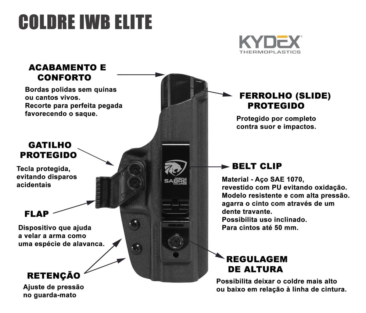 A Sabre Coldres se destaca pela seriedade e qualidade, garantindo ao cliente um produto confiável e com excelente acabamento. Garanta agora mesmo o seu Coldre Sabre Kydex Velado IWB Elite e desfrute da combinação perfeita entre segurança, performance e conforto.
