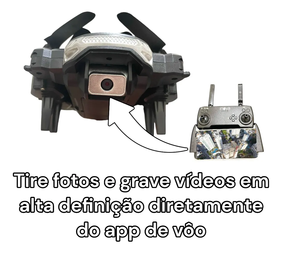 Capture o mundo de um novo ângulo com o Drone Inova Câmera Dupla 4K HD, o equipamento ideal para quem busca qualidade, estabilidade e praticidade nas suas filmagens aéreas.