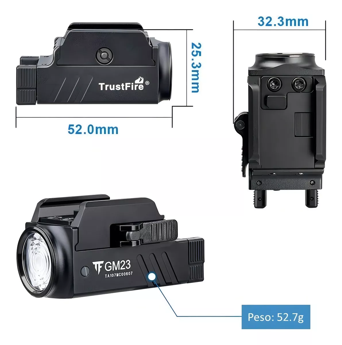 Lanterna Tática para Pistola Trustfire GM23 – Potência, Precisão e Confiabilidade em Cada Disparo